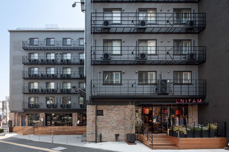 「北陸ツーリズムの発地」をコンセプトに、金沢の観光地、ひがし茶屋街にほど近い立地に位置する施設。老朽化した築50年のテナントビルを取得し、用途変更を伴うリノベーションによりホテルへ。2017年グッドデザイン賞受賞。THE SHARE HOTELSの第一号物件。