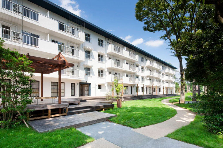 UR都市機構の団地再生事業として、多摩平の森の既存団地を改修。敷地内には高齢者向け住宅もあり、多世代交流できる構成が特徴。空地率86%の豊かな緑を活かし、共用ダイニングとウッドデッキを一体化させるなど、外部環境を取り込んだ空間設計を行う。地域住民との交流イベントも開催し、地域活性化にも貢献。
