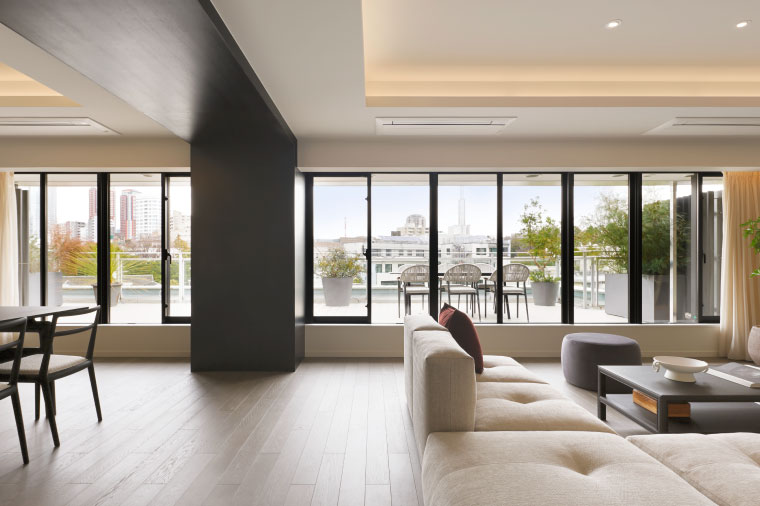 開放的なルーフバルコニーから都市と緑の調和を愉しむ
