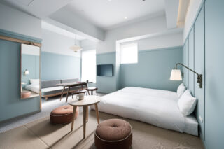 植物の蒸留所を持つゲストラウンジや、大文字山などの山々を遠くに望むルーフトップテラス、スペシャルティコーヒーを提供するカフェなど、特徴ある多様な共用部がホテルゲストの滞在を豊かにします。客室は全9タイプ56室で1名様からグループまで多様なニーズに対応しています。