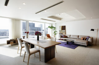 全体的劣化がみられた専有部は、実績のある著名デザイナーを起用。現在のライフスタイルに合わせプランを変更するとともに、普遍的な内装デザインでリノベーション。他住戸の今後のリノベーションの参考にもなり得るフルリノベーションを実施した。