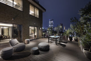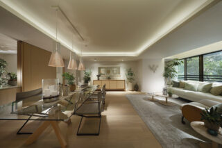 植栽を抜けるアプローチ、平均約200㎡の専有面積、約7割の住戸に専用庭やルーフバルコニーを持つ建物構成を活かして、「住まいには庭があるべき」という設計思想を継承。邸宅特有の価値を守りつつ、アプローチやエントランスなど随所に“本質”を追求したリノベーションを実施。既存躯体やインフラを丁寧に見直し、排水・断熱性は改善。一邸ごとの住戸特徴に合わせた暮らしを提案。
